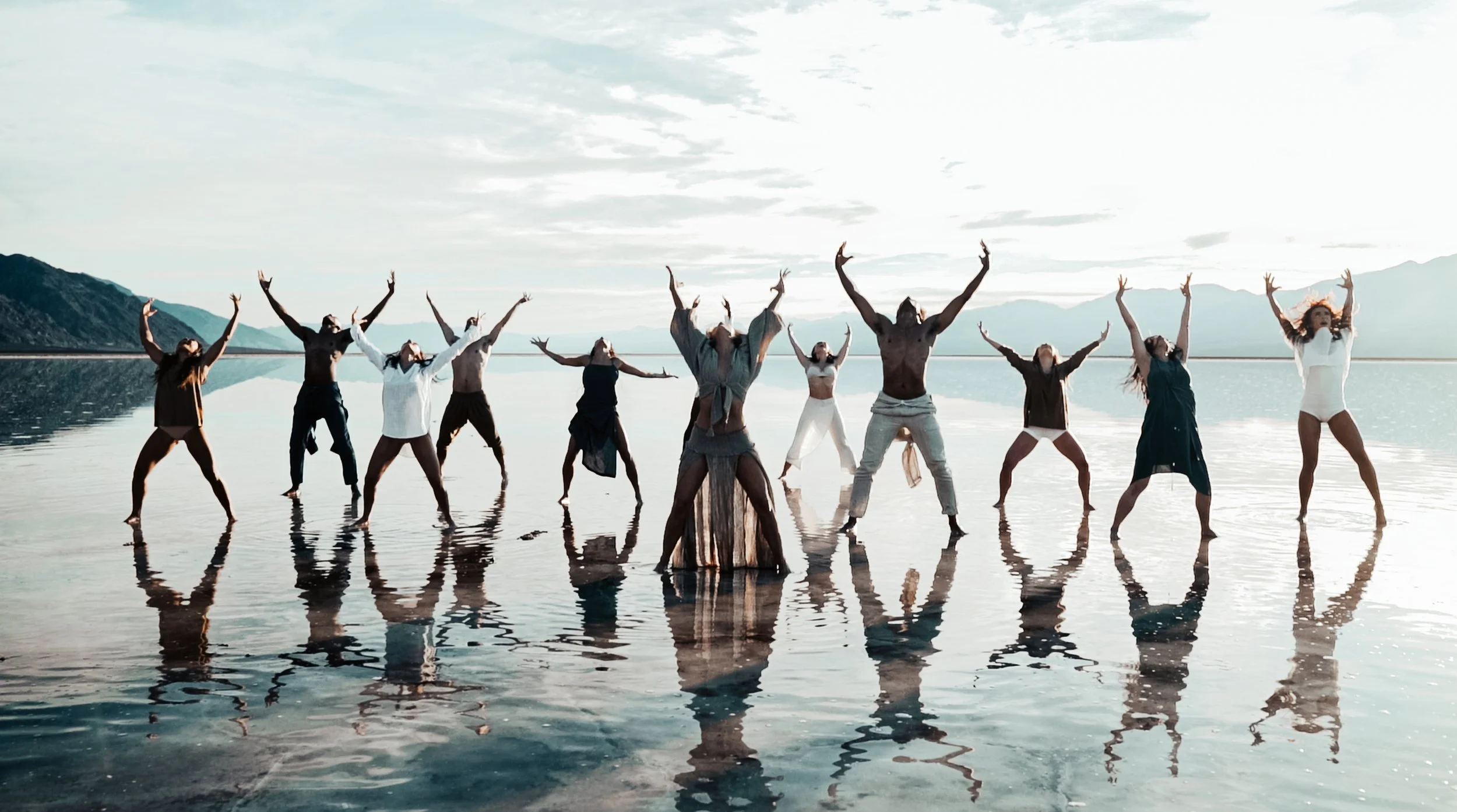 Inspired by the five elements—earth, water, air, fire, and aether—the desert water landscape became a cinematic container for breath, movement, and energetic transformation.